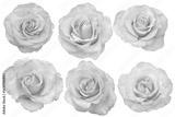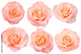Six soft orange rose in full bloom with delicate, layered petals. Its gentle color and smooth texture create a fresh, elegant look against a white background.Photo with Clipping Path.