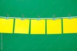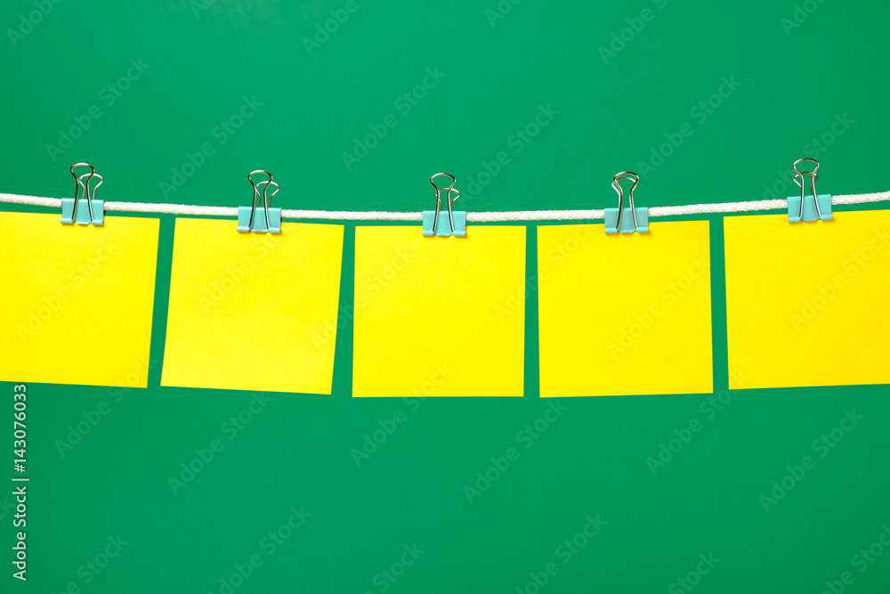 Blank yellow paper sheets on the string