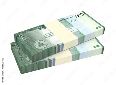 Nicaraguan cordoba bills isolated on white background. 3D illustration.