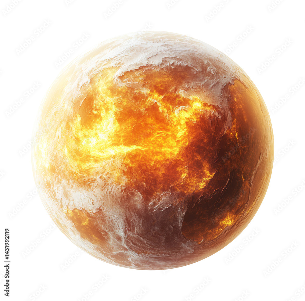 Dynamic eruption of volcanic planet outer space digital cosmic view isolated on transparent background