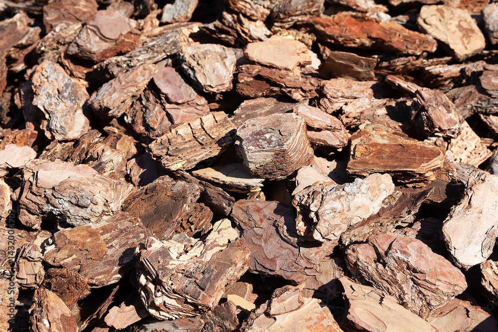 Fragments of pine bark close-up