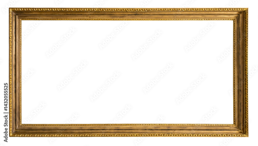 Artistic gilded antique picture frame (panoramic format) with transparent background, png image.