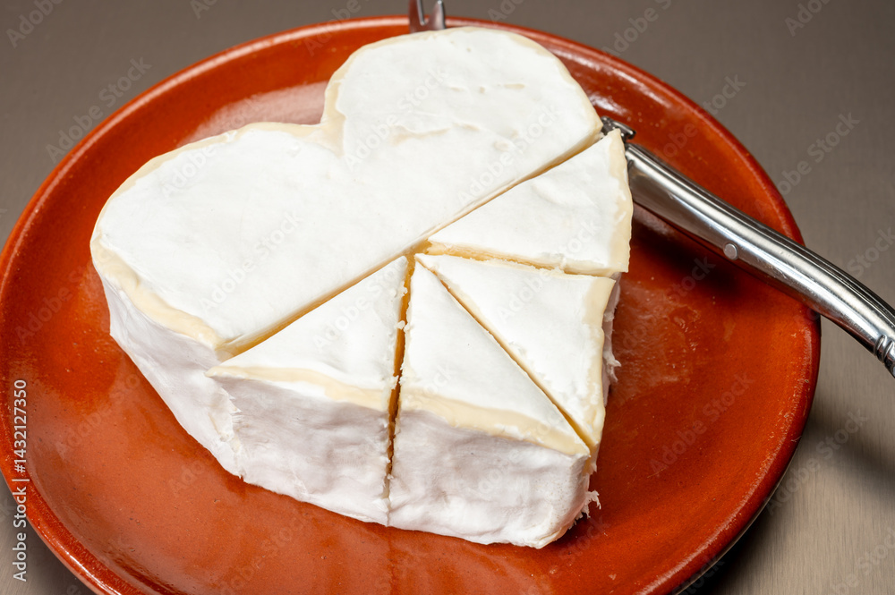 Cheese collection, French cheese from Normandy region, heart-shaped neufchatel from farm shop close up