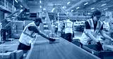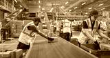 In a Modern Sorting Center Facility, Diverse Workers in Safety Vests Loading Parcels Onto a Conveyor, Efficiently Working Together as a Team. Logistics and Postal Service Operations