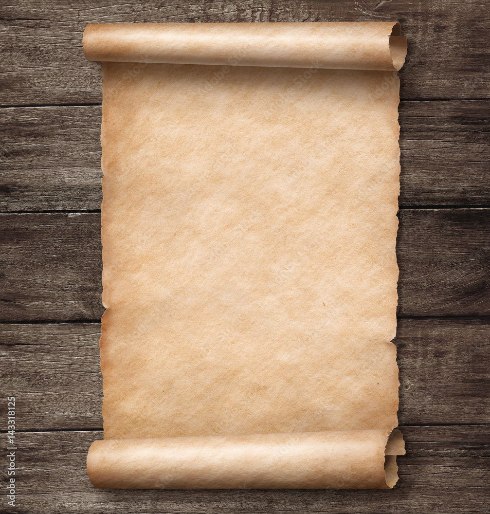 vintage paper scroll on wood