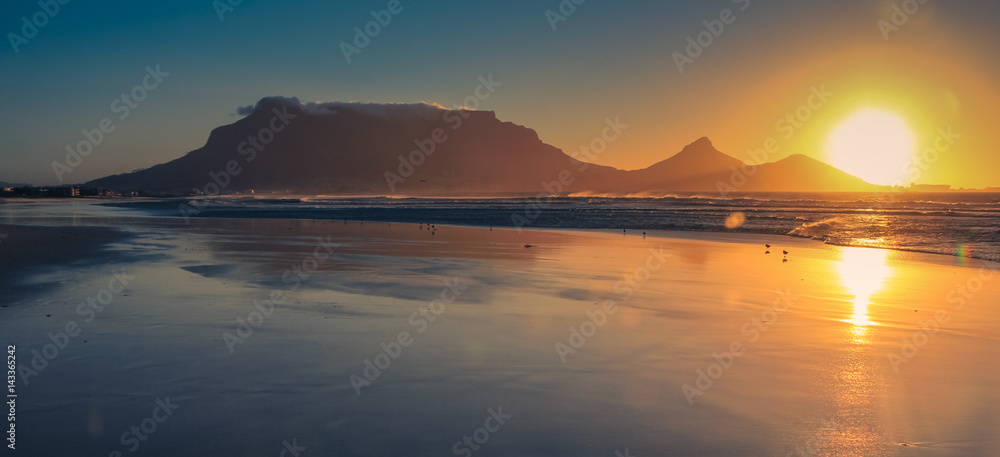 Beautiful sunset at Milnerton beach, showing the Table Mountain , Cape Town, South Africa