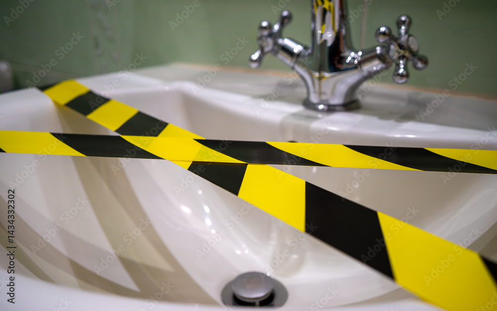 The yellow-black signal tape is used for temporary fencing of territories during repair, construction, and rescue operations. Poisoning of water in the faucet.Prohibition on the use of drinking water.