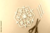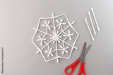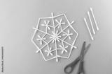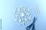 Creative symmetry in everyday objects, white cotton swabs arranged in a snowflake like hexagonal pattern. Useful for education, design, DIY or sustainability-focused activities