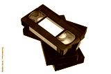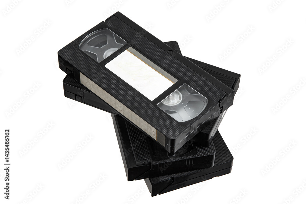 A collection of black VHS cassettes organized into a stack, highlighting their iconic retro design.