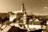 Scenic view of Cesky Krumlov cityscape with historic architecture in Cesky Krumlov, Czech Republic