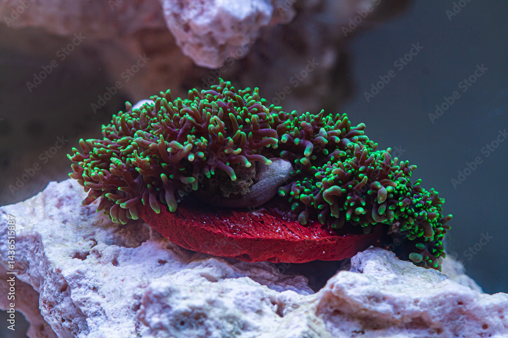 Coral Neon Green Hairy Mushroon in Reef Tank