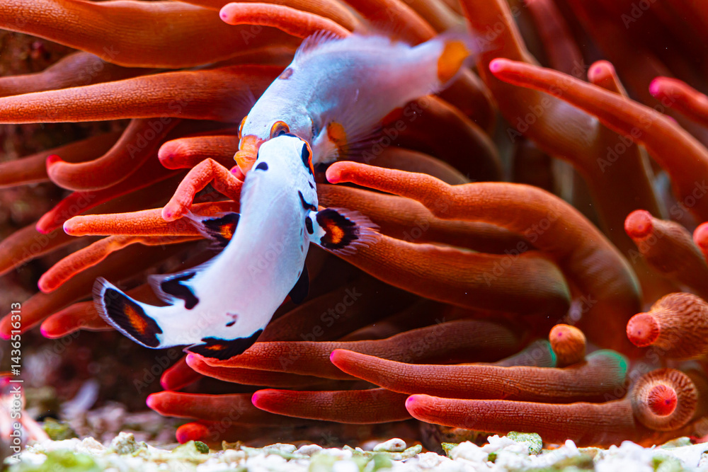Anemone Rainbow Bubble Tip in Reef Tank with Clownfish