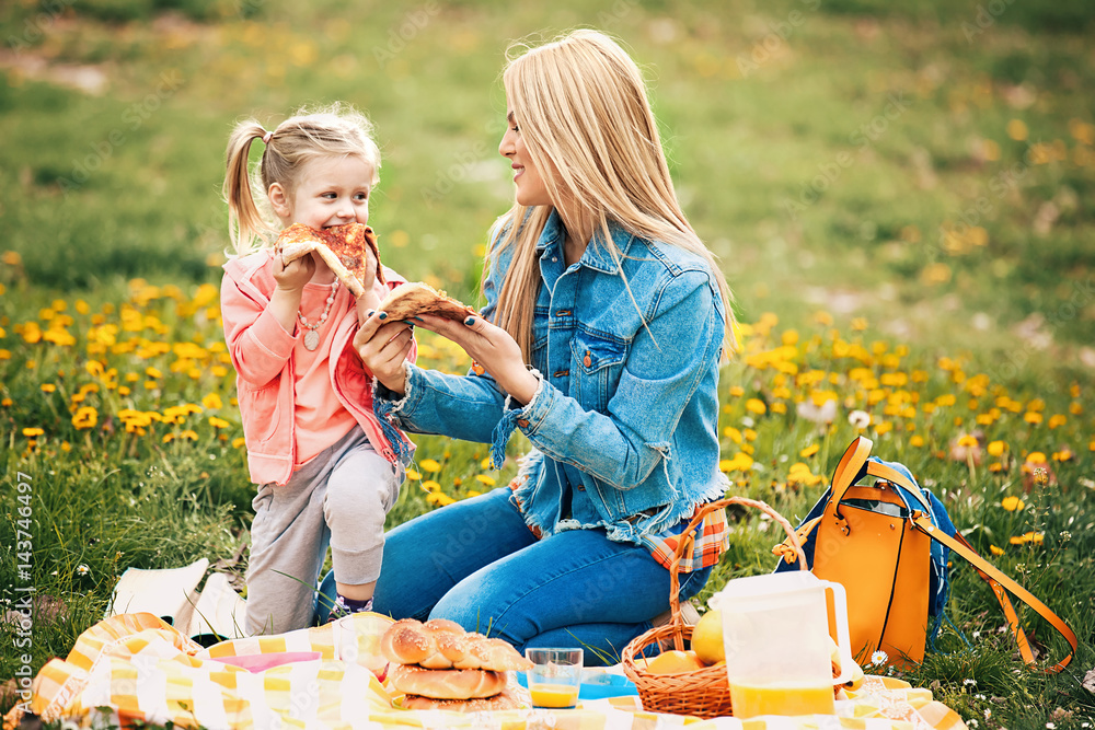 Mum and Daughter Enjoying Picnic in Park