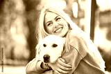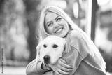 Young Woman in Park With Dog