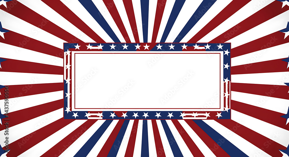 Patriotic Sunburst Background with Frame, perfect for American holidays, sales, and social media campaigns