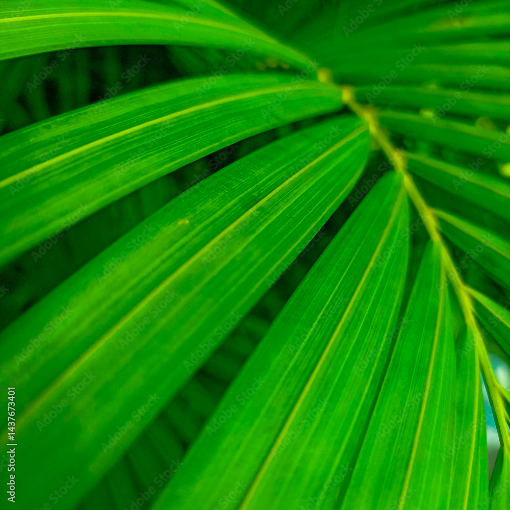 A close-up of fresh green coconut leaves, showcasing vibrant lines and natural elegance — simple, vivid, and captivating.