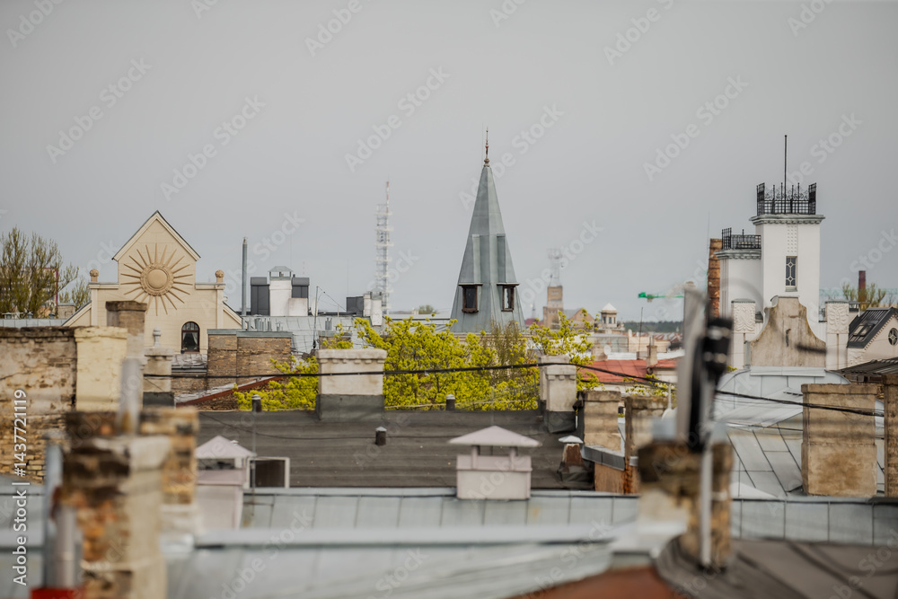 Modern rooftop chimneys in roof tile