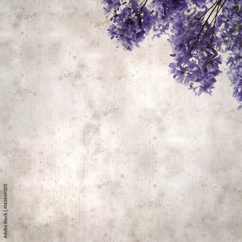 stylish square textured old paper background with Flowers of blue jacaranda, Jacaranda mimosifolia