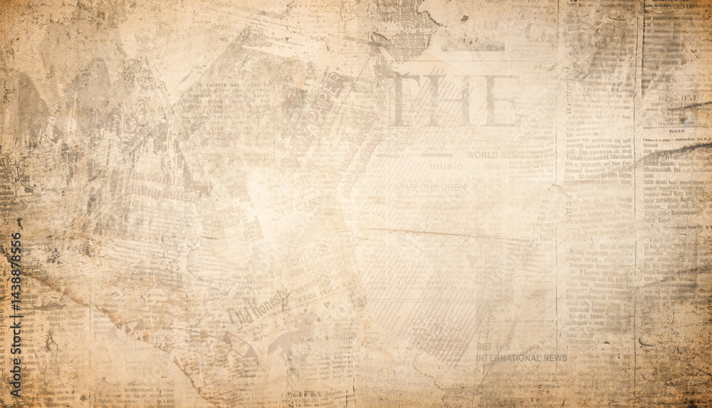 Old newspaper background, brown grunge news print texture, vintage wallpaper pattern, vintage poster design . Old crumpled grunge newspaper paper texture background. Blurred vintage