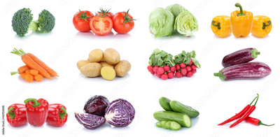 Gemüse Karotten Tomaten Paprika Gurken Salat Aubergine Essen Freisteller freigestellt isoliert