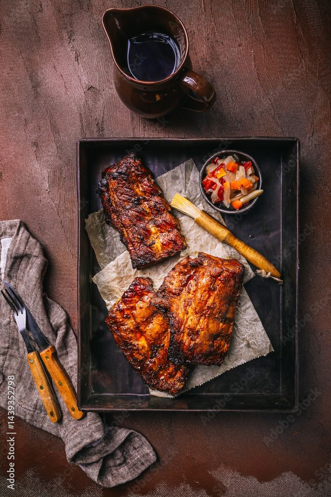 Barbecue pork spare ribs fromairfryier with fermented vegetables
