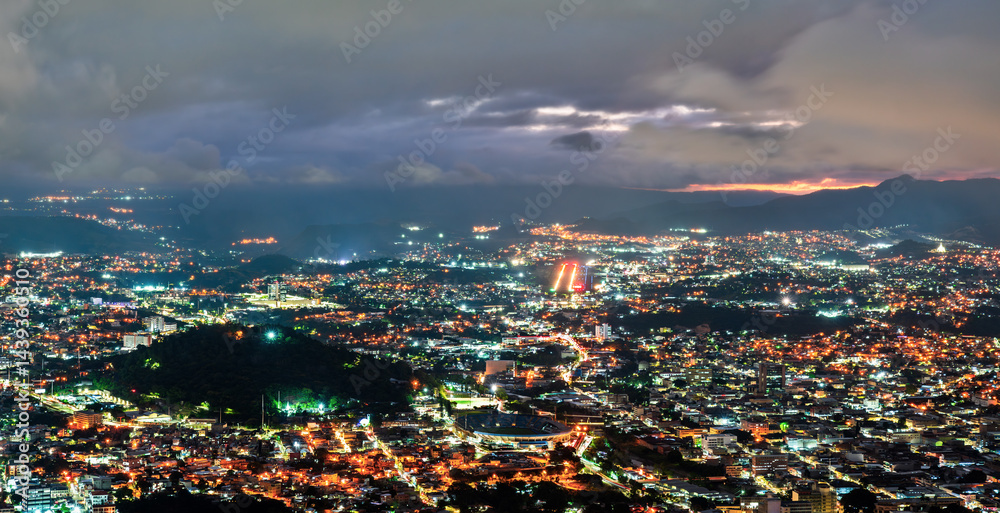Aerial night skyline of Tegucigalpa from El Picacho Park, Honduras