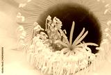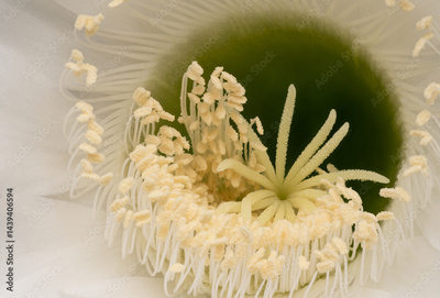 Detailed view of a blooming cactus flower with prominent stamens and pistil