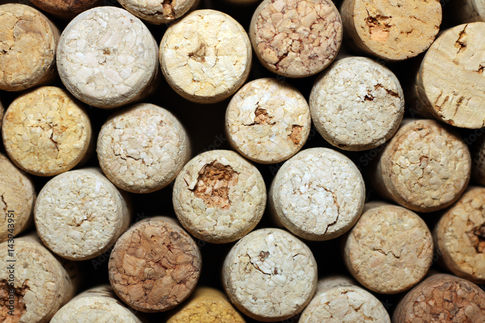 Wine corks background horizontal / used wine corks / many wine corks / closeup of a wall of used wine corks