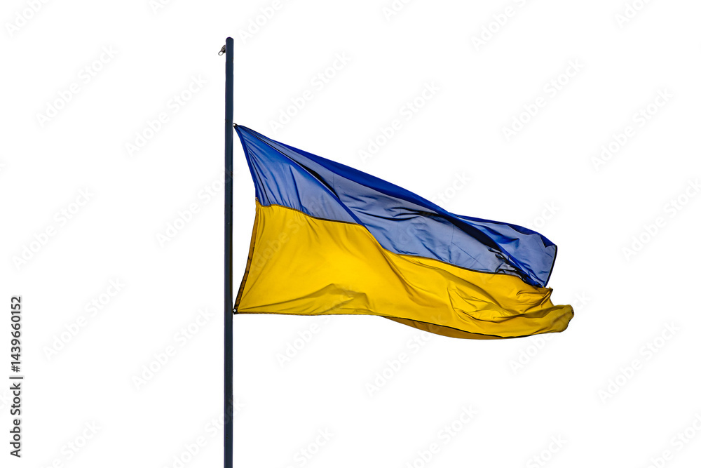 The flag of Ukraine fluttering in the wind on a white background. A symbol of national pride, freedom, independence and resilience. Suitable for use in news articles, social media, political campaigns