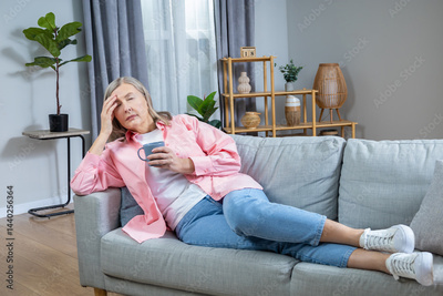 Menopausal woman suffering from a headache and feeling unwell
