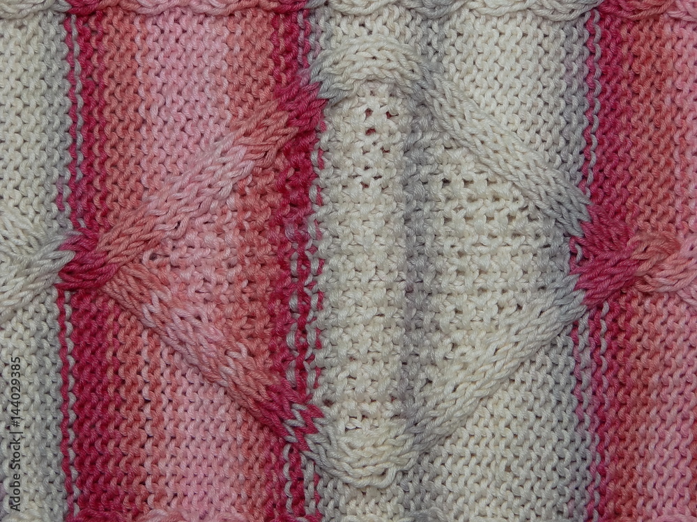 красивая вязаная ткань в красных и бежевых тонах, крупным планом
