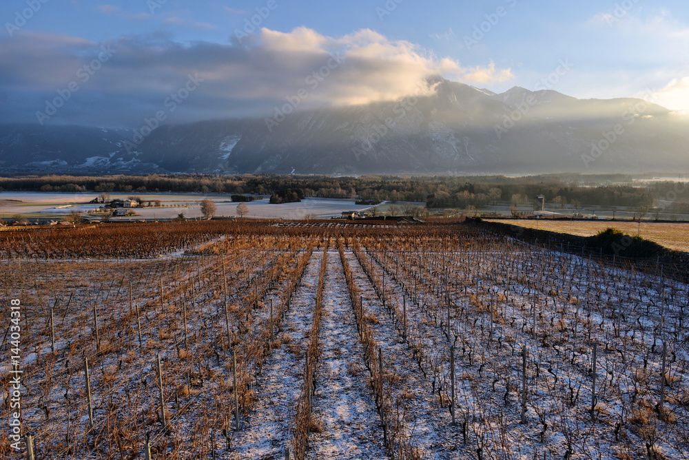 Vineyards in winter in the snow