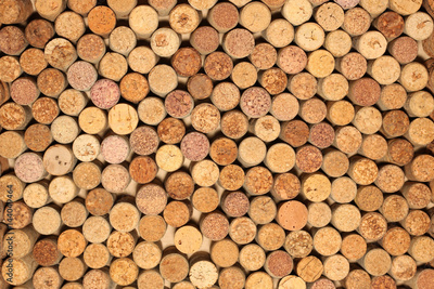 Wine corks background horizontal / used wine corks / many wine corks / closeup of a wall of used wine corks