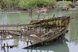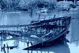 sunken old ship called BURCIO or BURCHIO in italian in the BURCI CEMETERY a suggestive place in the bend of the river SILE in Italy with wrecks of old boats used for the transport of Good