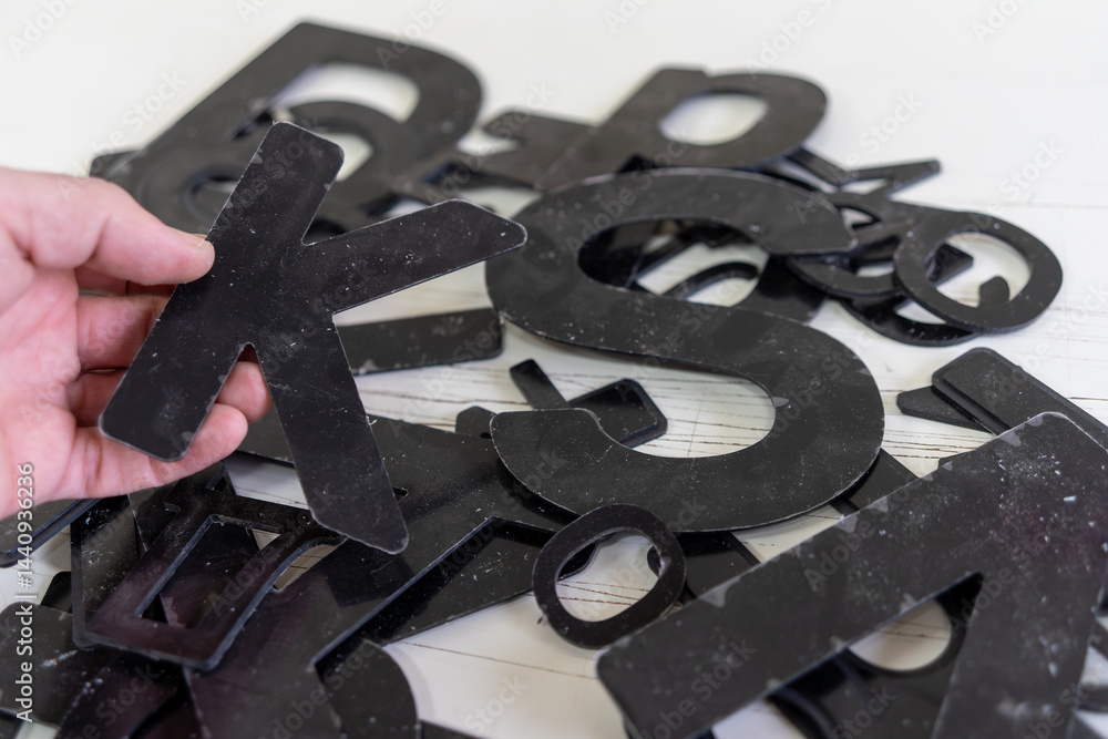 PVC plastic logo on a milling machine. Plastic letters for car styling.