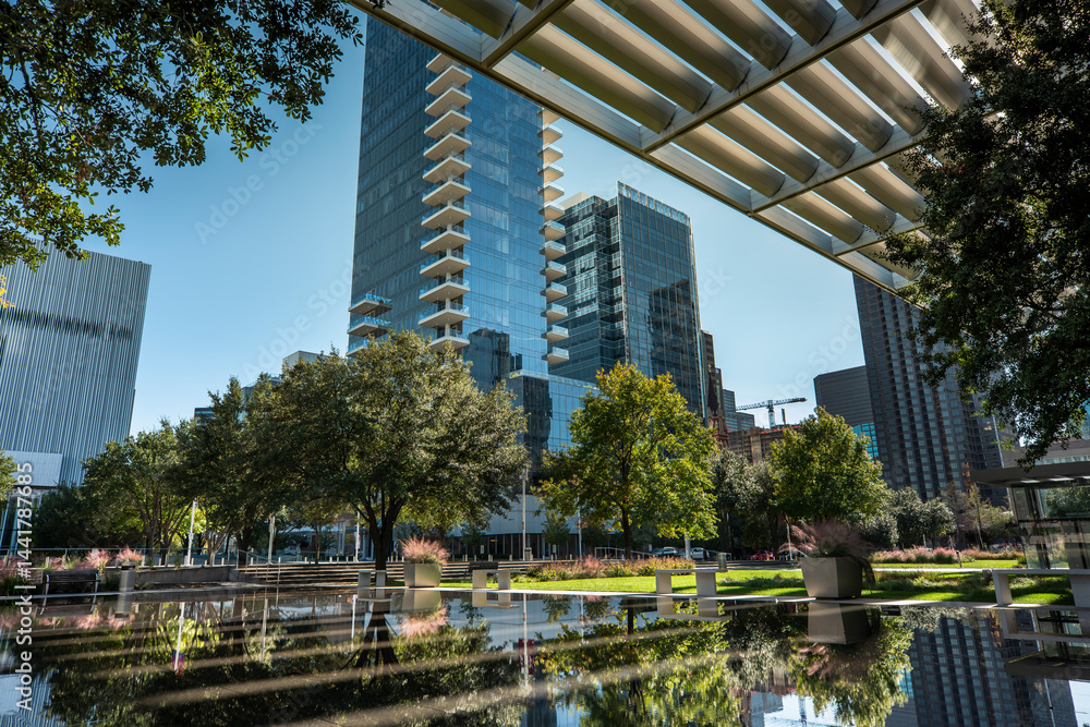 Downtown Dallas Texas city skyline view on summer afternoon