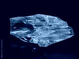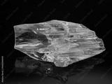 A captivating raw beryl crystal specimen highlighted against a black backdrop, showcasing its translucent, pale grey to clear structure with visible internal inclusion and subtle striations