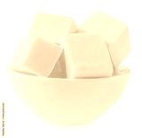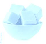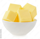 Butter cubes isolated on white background. Fresh cow’s milk butter pieces in a white bowl close up. Cooking Package design element..