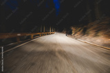 the headlights of a car on mountain road in the night - speed concept driving safety