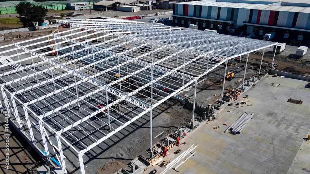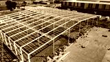 Warehouse construction process with metal structures and roofs