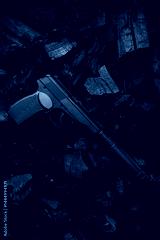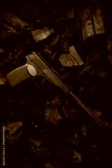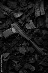 Tactical BB Gun Styled as Pistol with Silencer in Ember Background..