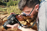 Young photographer looking at the screen of his camera