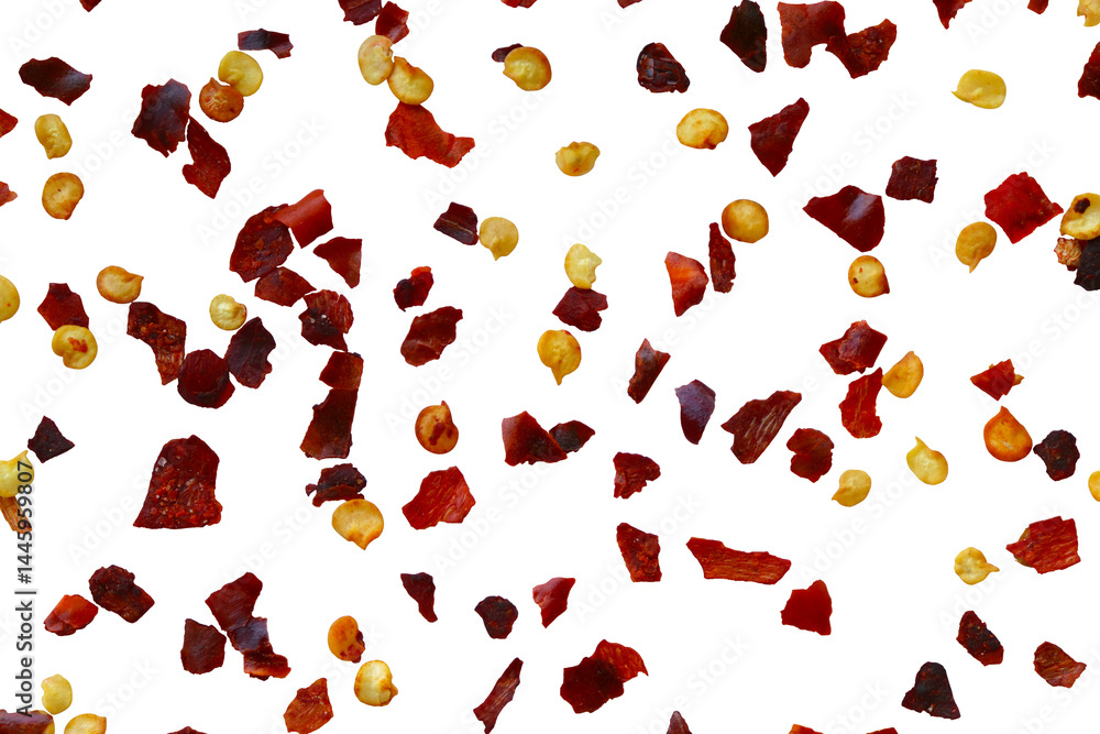Top view Spicy chili red pepper flakes, paprika isolated, cut out