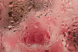 Smoke Soft focus pink flower bouquet through glass with water drops. Abstract natural blur background.