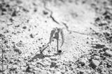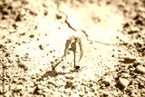 une petite plante verte au milieu de la terre séche