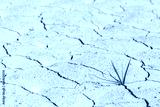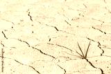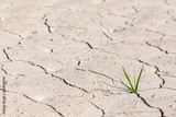des brins d'herbe, au milieu de la terre craquelée par la sécheresse