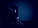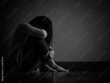 sad woman hug her knee and cry. Sad woman sitting alone in a empty room.