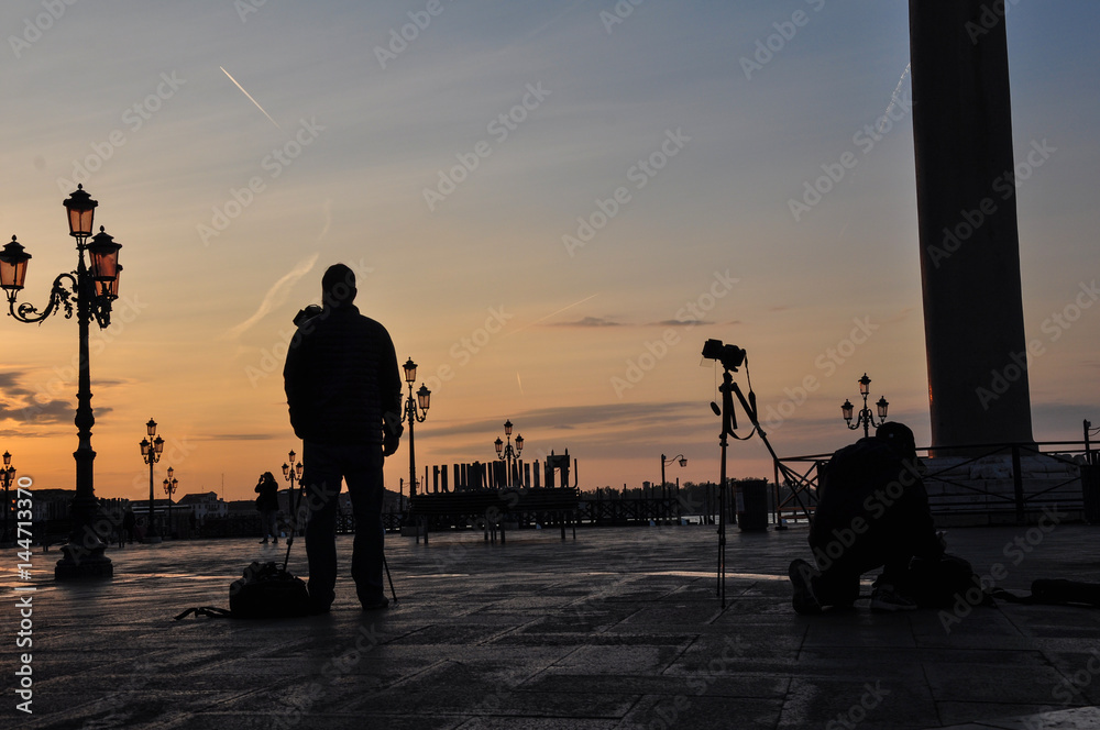 Fotografen warten auf Sonnenaufgang in Venedig