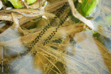 Common toad Bufo bufo European eggs frog close-up water reproduction spawn ball strings bottom north clump consist plant coupling underwater. Biodiversity of amphibian species spring time