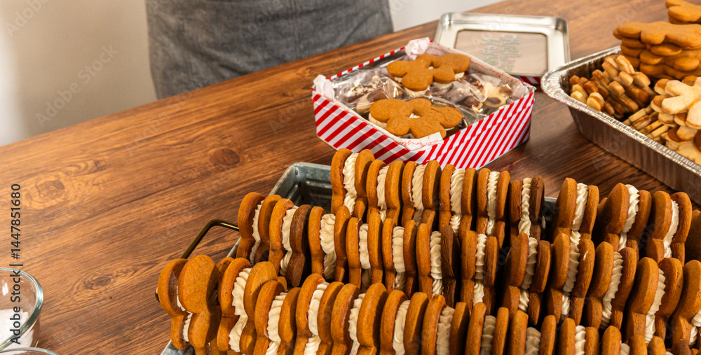 Making Festive Gingerbread Sandwiches on Rustic Wooden Table